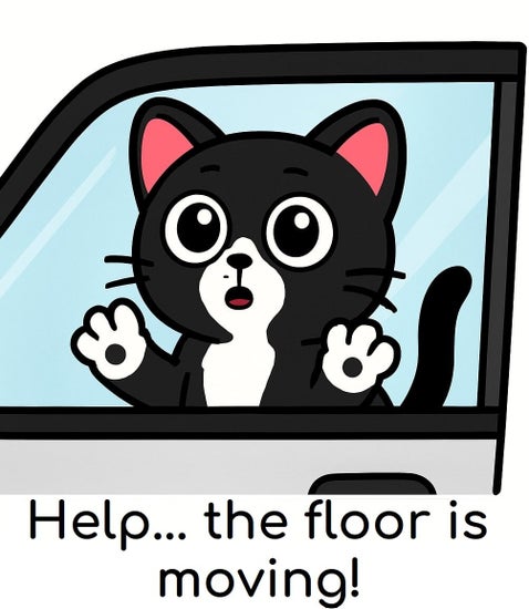 In a blur of fur and indignation, we scrambled out. My sister darted across the back seat, immediately claiming the high ground on the headrest like some kind of pirate captain. My brother waddled into the passenger footwell, curling up as though nothing had happened (convenient memory, that one).